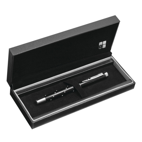 Metall-Tintenroller RIGA: in schwarzer Klavierlack-Optik, mit Metall-Schaft, verziert mit 24... mehr