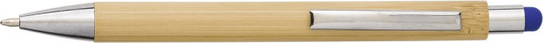 Kugelschreiber aus Bambus mit Kunststoffspitze und -oberseite, inkl. Touch-Pen. Der Clip ist aus Metall. Blaue Mine.