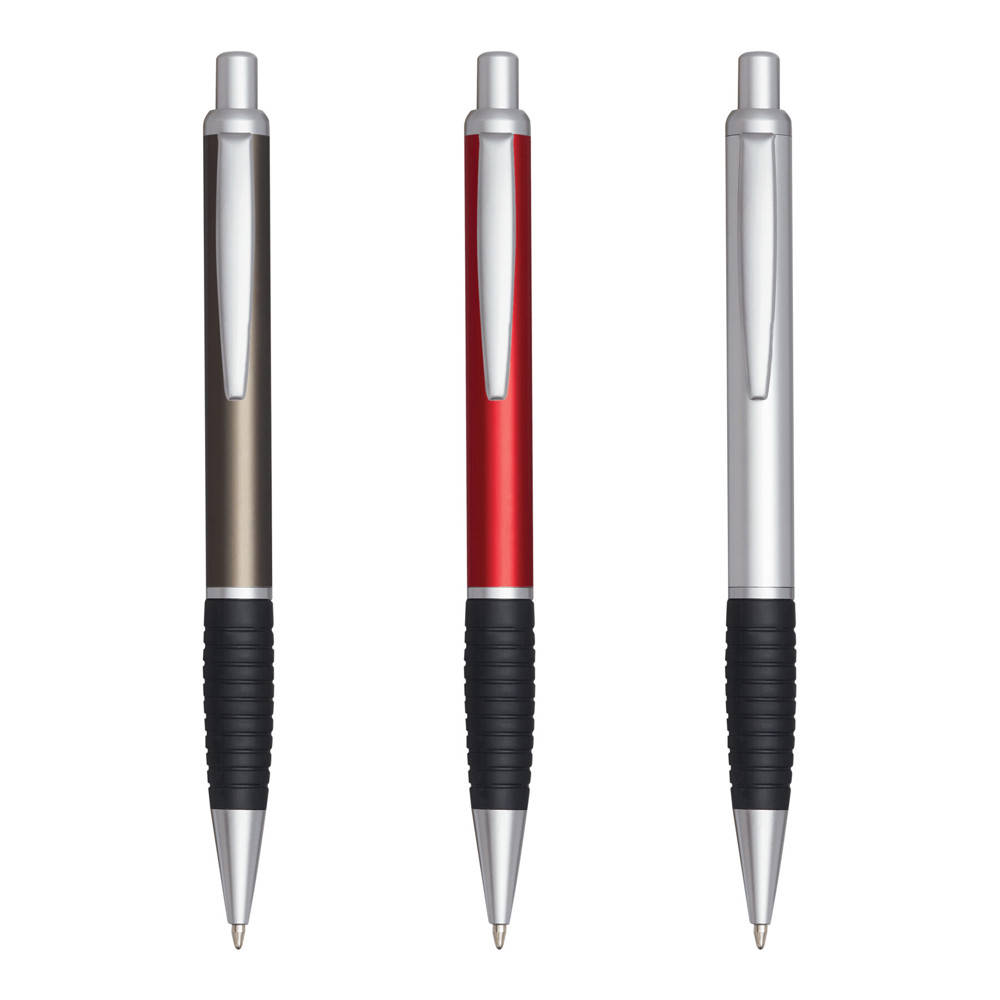 Aluminium-Kugelschreiber VANCOUVER: mit mattem Aluminium-Schaft, gummierter Griffzone, Druckmechanismus, Großraummine, blauschreibend