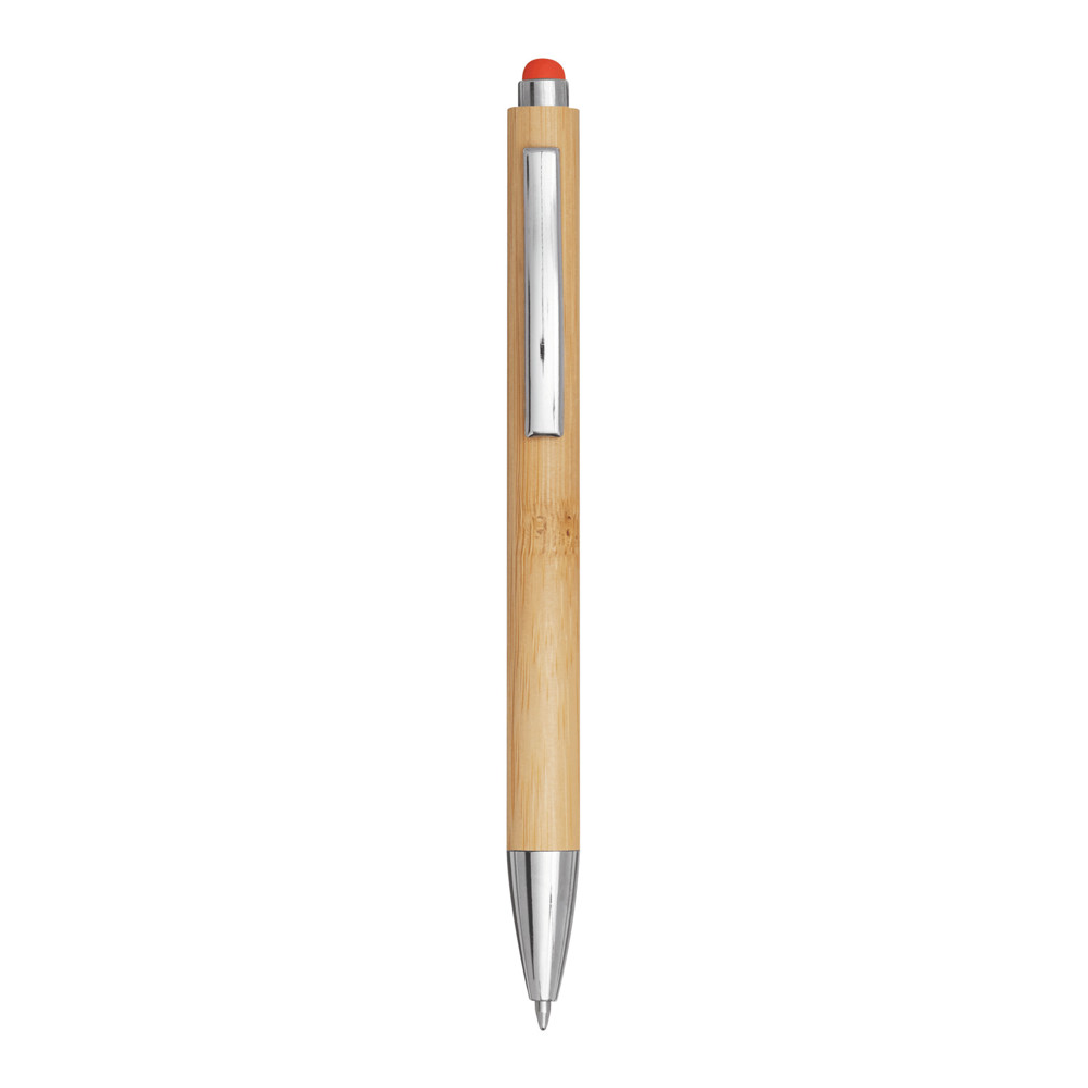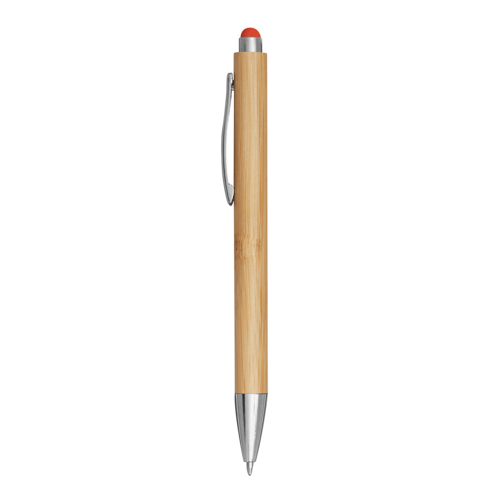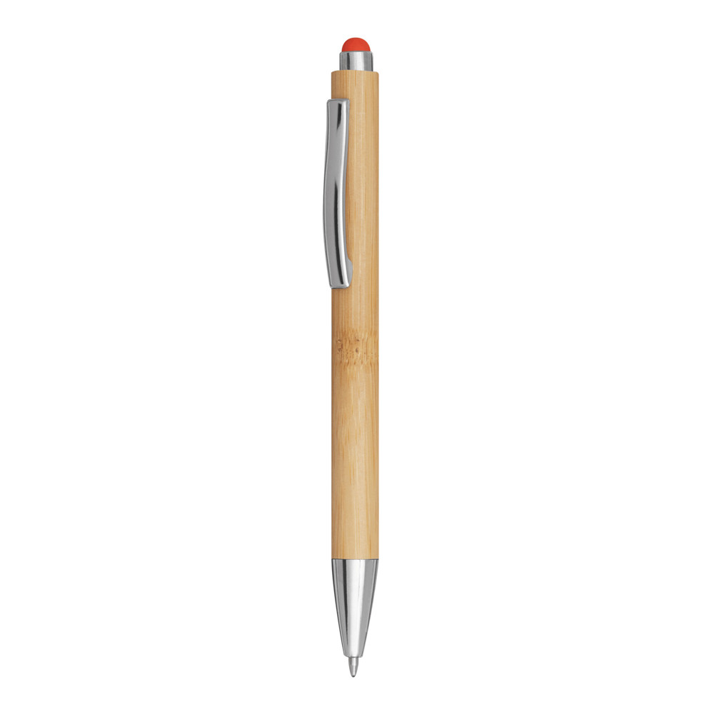 Kugelschreiber TOUCHY: mit elegantem Bambus-Schaft, Druckmechanismus, am Schaftende mit farbiger Touchscreen-Spitze, blauschreibend