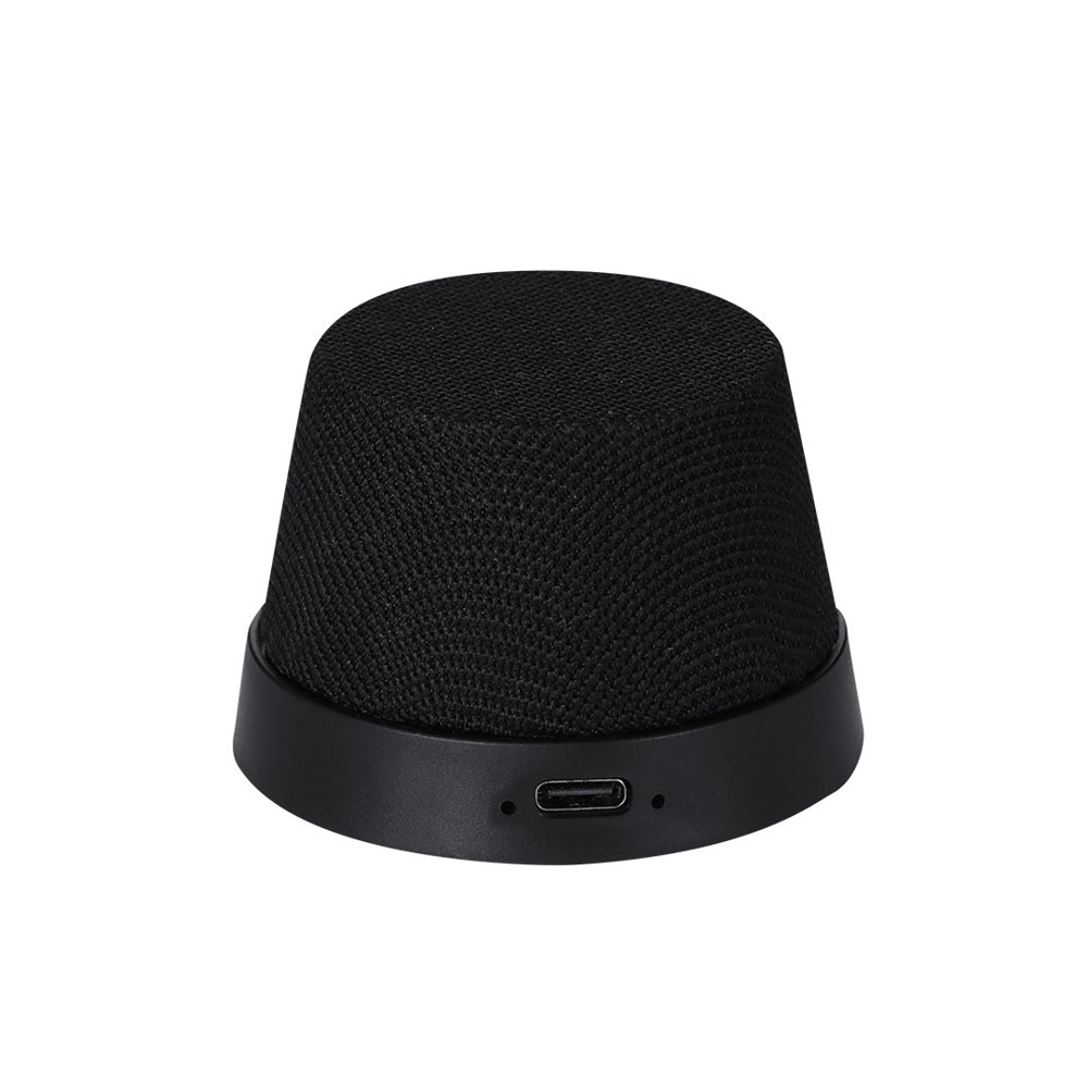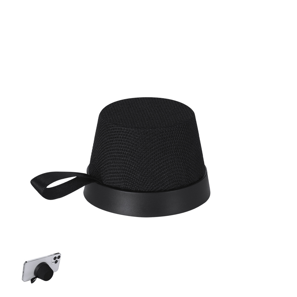 3W-Bluetooth-Lautsprecher® mit magnetischem Haken aus RPET-Polyester. Magnethalter, den du auf der Rückseite deines Smartphones anbringen kannst. Enthält einen Polyester-Griff für einfachen Transport. Bluetooth-5.3-Verbindung, Typ-C-Ladekabel.