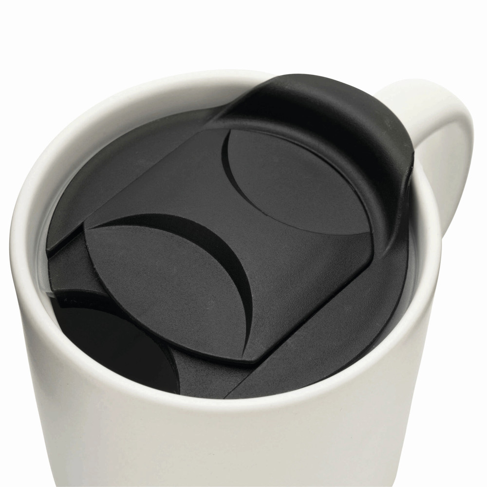 Keramiktasse DAY & NIGHT: Tasse aus Keramik mit abnehmbaren Korkboden, abnehmbarer Kunststoff-Deckel mit Schiebeverschluss, Füllmenge ca. 350 ml