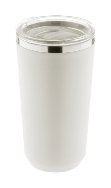 Doppelwandiger Thermobecher aus Edelstahl mit Überzug aus PP-Kunststoff und Trinkdeckel. Füllmenge: 500 ml.