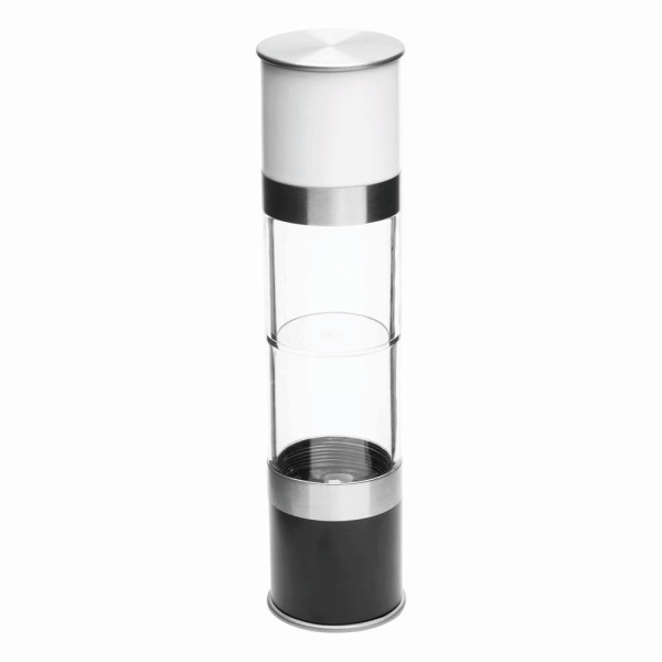 Salz- und Pfeffermühle BOTH TOGETHER: mit stabilem Keramik-Mahlwerk und Sichtfenster, Drehmechanismus auf beiden Seiten - mahlt auf der einen Seite Salz und auf der anderen Pfeffer, in Box