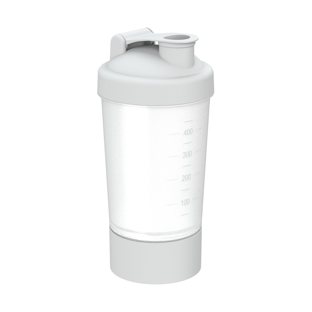 Shake it up! Ideal für den Eiweiß-Shake nach dem Training. Dieser Shaker mit geprägter Skala in 50 ml Schritten und Schraubdeckel mit verschließbarer Trinköffnung beinhaltet ein herausnehmbares Sieb, mit dem sich Shakepulver und Flüssigkeit bei gutem Schütteln optimal vermischen. Zusätzlich verfügt dieser Shaker über eine abnehmbare Kammer, welche sich separat befüllen lässt. Der Mix-Becher lässt sich komplett auseinandernehmen und somit leicht reinigen. Füllmenge (Shaker ohne Zusatzfach): 0,4 Liter.