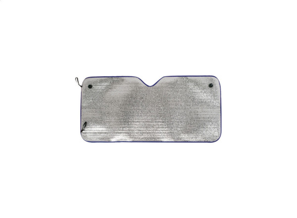 Sonnenblende für die Front- oder Heckscheibe mit Aluminium-Beschichtung (55 g, 1,8 mm stark) und Saugnäpfen.