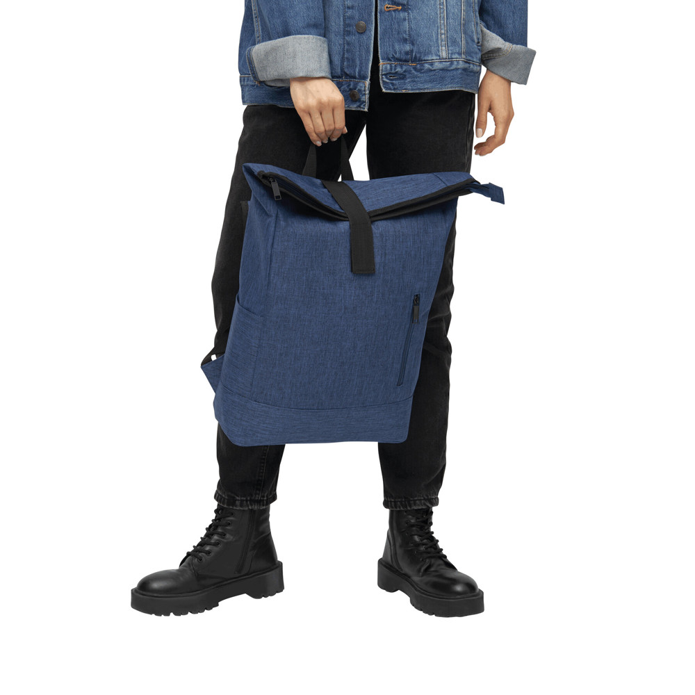 Rucksack MESSENGER: vertikales Reißverschluss-Vorfach, Reißverschluss-Hauptfach mit gepolstertem Innenfach für Laptop oder Tablet, aufrollbar und mit Klettverschluss verschließbar, gepolsterte Schultergurte und Rückenbereich, Trageschlaufe