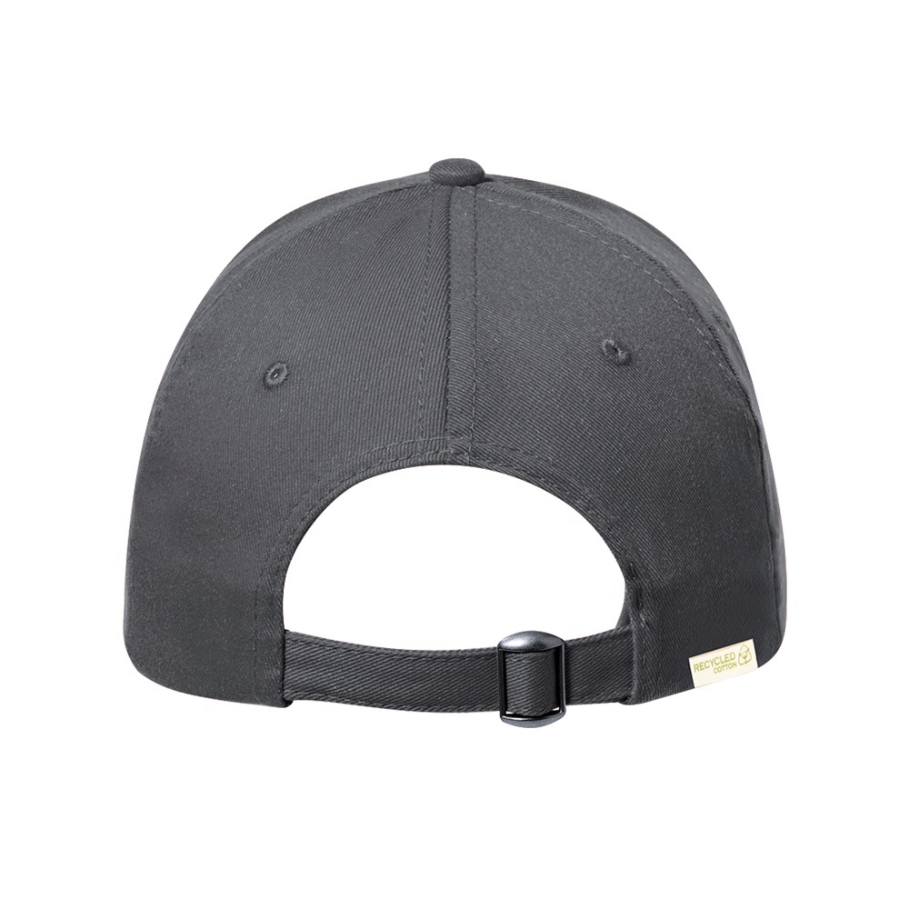 6-Panel-Kappe aus recycelter Baumwolle mit weichem Finish. Mit verstellbarem Schnallenverschluss und gestickten Belüftungslöchern. Erhältlich in einer Vielzahl von Farben, mit recycelte Baumwolle-Logo auf dem Etikett.