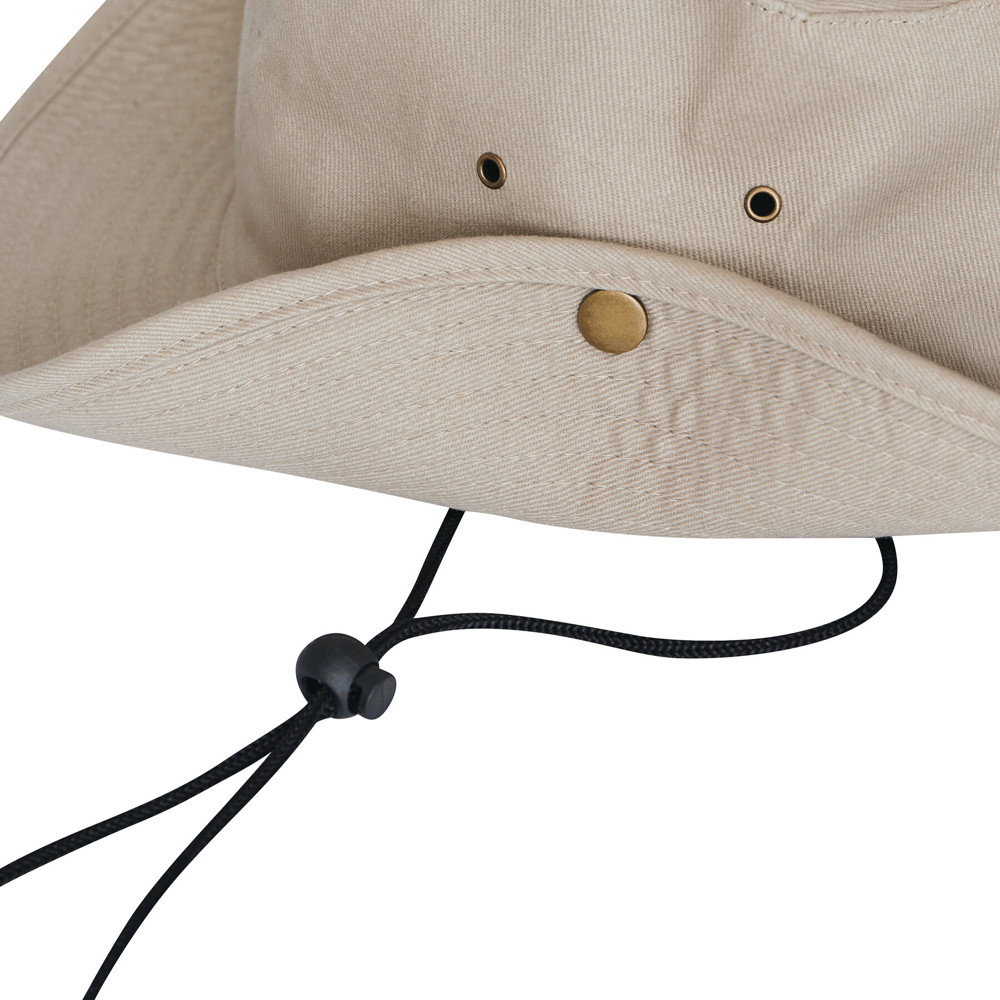 Safarihut SUNDALE: Krempe mittels Druckknopf seitlich hochklappbar, 4 Luftlöcher aus Metall, Kinnband mit Kunststoffstopper zum Anpassen an die Kopfgröße