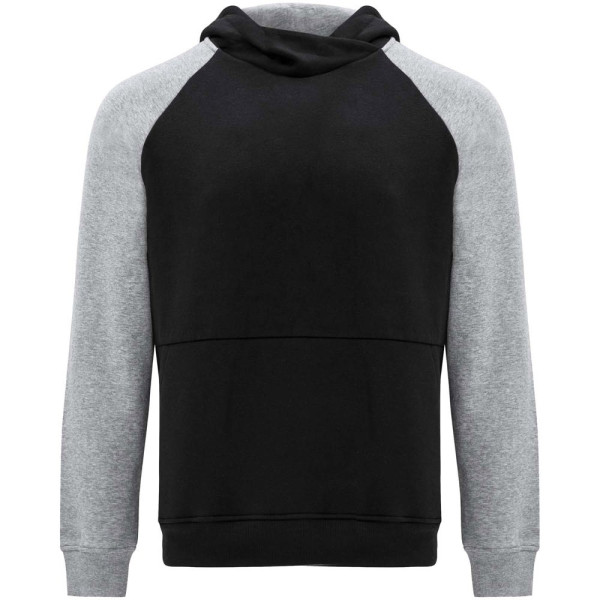 Zweifarbiger Unisex Kapuzenpulli. Kapuze mit gekreuztem Kragen und Metallösen. Innenkapuze, Kordelzug und Raglanärmel in Kontrastfarbe. Kängurutasche. Bündchen und Saum aus elastischem 1×1-Rippstrick. Abnehmbares Etikett.