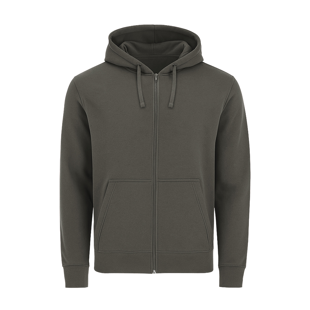 Unisex-Kapuzen-Sweatshirt mit gefütterter Kapuze aus doppellagigem Stoff in passender Farbe. Hergestellt aus Baumwolle und Polyester in weichem, aufgerautem Fleece 280 g/m. Durchgehender Frontreißverschluss in passender Farbe. Mit verstellbarem Kordelzug und passenden Metallösen, Kängurutasche, verstärktem Nackenband sowie Bündchen und Saum aus 1x1-Rippstrick mit Elasthan für besseren Sitz und Komfort.