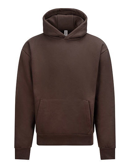 Ringgesponnene Baumwolle / recycelter Polyester | Oversize fit | Schweres Material | Doppellagige Kapuze mit drei Segmenten | Kängurutasche mit Handy-Innentasche | Keine Kordelzüge | Gerippte Ärmelabschlüsse und Saum | Gebürstetes Innenvlies | 100 % Baumwoll-Obermaterial | Abreißetikett