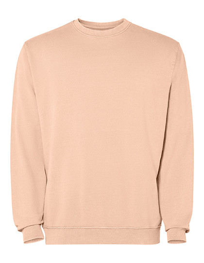 Unisex Sweatshirt mit Rundhalsausschnitt | Frottee-Baumwolle, sauer gewaschen | 2x1 gerippter Kragen, Manschetten und Saum in Ton | Verstärkte Nähte an Bündchen, Saum, Bund und Armausschnitten | Ton-in-Ton-Deckstich am Halsausschnitt