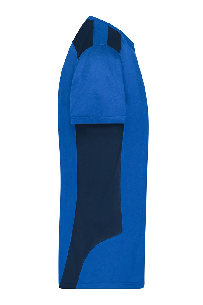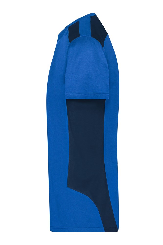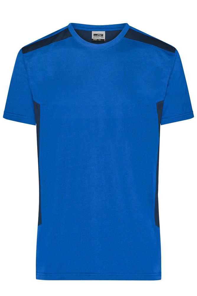 Materialmix aus gekämmter, ringgesponnener BIO-Baumwolle und recyceltem Polyester für optimale Form- und Waschbeständigkeit Kontrastfarbige Einsätze an Seite und Schulter Halsbündchen mit Elasthan, Necktape 60°C waschbar, trocknergeeignet 1/2 Oberweite: 48 cm Länge ab Schulter: 70 cm Ärmel Länge: 19 cm Work-Level: STRONG OEKO-TEX® Standard 100 (25.HDE.51239) Große Größen Größen bis 6XL Waschbar mit 60°C Bio Baumwolle OCS Standard blended GRS Standard