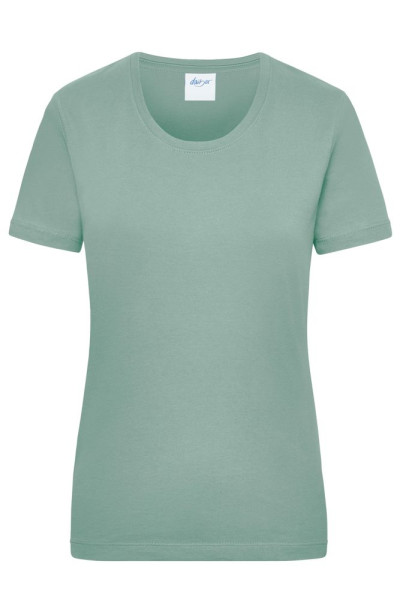 Einlaufvorbehandelter hochwertiger Single Jersey mit optimaler Formbeständigkeit Gekämmte, ringgesponnene Baumwolle Schnitt garantiert optimale Bewegungsfreiheit Doppelnähte, Necktape JN802: leicht tailliert Weiß: 95°C waschbar, trocknergeeignet Farbig: 60°C waschbar, trocknergeeignet 1/2 Oberweite: 45 cm 1/2 Taillenweite: 40 cm 1/2 Saumweite: 47 cm Länge ab Schulter: 62 cm Ärmel Länge: 19 cm Work-Level: ESSENTIAL OEKO-TEX® Standard 100 (15.0.70467) Waschbar mit 60°C Baumwolle Rundhals