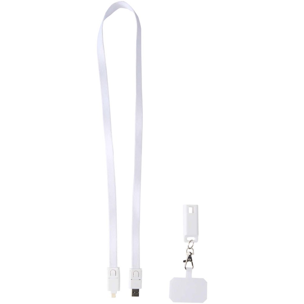 Das Franz Smartphone-Lanyard aus recyceltem Kunststoff ist ein praktisches Accessoire mit integriertem 65W 5-in-1 Ladekabel, das über Typ-C- und USB-A-Eingänge sowie Typ-C-, Lightning- und Micro-USB-Ausgänge verfügt. Das Kabel ist leistungsstark genug, um die meisten Laptops, Tablets und Smartphones schnell aufzuladen. Kompatibel mit CarPlay und Android Auto – ideal für Reisen, Arbeit oder den Alltag.