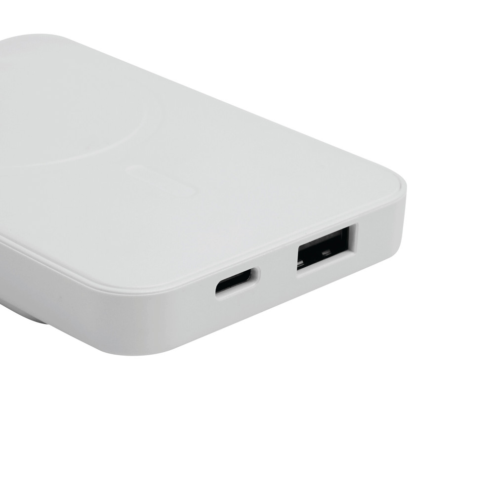 Powerbank MAGNET: geeignet für Smartphones und USB-betriebene Geräte, kabelloses Aufladen des Gerätes durch Auflegen auf die Kontaktfläche (Gerät muss für induktives Laden gerüstet sein), dank Magnetkraft hält das Gerät an der Powerbank (geräteabhängig), inkl. USB-Ladekabel mit USB Typ C Stecker (Länge: ca. 30 cm), mit Ladestandanzeige in Prozent, Ein- und Ausschalter, 1 USB Typ C Eingang und 1 USB Typ A Ausgang, Eingangsleistung: 5V/2A, Ausgangsleistung: 5V/2A, Kapazität: 5.000 mAh, leistungsstarker Lithium-Akku, in Box