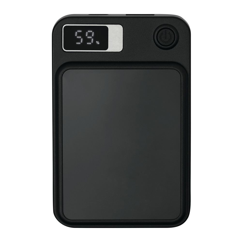 Powerbank MAGNET: geeignet für Smartphones und USB-betriebene Geräte, kabelloses Aufladen des Gerätes durch Auflegen auf die Kontaktfläche (Gerät muss für induktives Laden gerüstet sein), dank Magnetkraft hält das Gerät an der Powerbank (geräteabhängig), inkl. USB-Ladekabel mit USB Typ C Stecker (Länge: ca. 30 cm), mit Ladestandanzeige in Prozent, Ein- und Ausschalter, 1 USB Typ C Eingang und 1 USB Typ A Ausgang, Eingangsleistung: 5V/2A, Ausgangsleistung: 5V/2A, Kapazität: 5.000 mAh, leistungsstarker Lithium-Akku, in Box